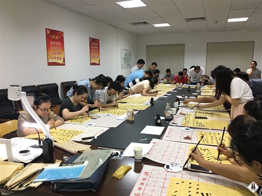 725日中午1230,書法班開班,廣西書法家協(xié)會的蒙匯鵬老師先從執(zhí)筆姿勢、手法運(yùn)用、字體結(jié)構(gòu)等基礎(chǔ)理論知識進(jìn)行了講授,在實(shí)踐練習(xí)過程中,大家認(rèn)真臨摹,反復(fù)練習(xí),個(gè)個(gè)興趣盎然,現(xiàn)場氣氛濃厚,一片翰墨飄香。